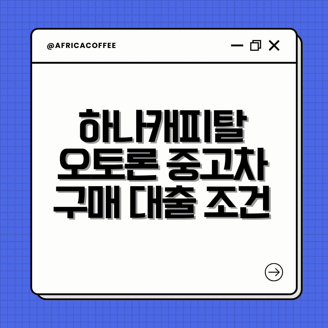 중고차 구매 고민 끝! 하나캐피탈 오토론 중고차 구매 대출 조건부터 금리, 신청 팁까지 한눈에 확인하세요.